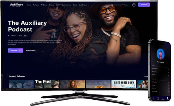 The Auxiliary Network is a streaming platform that offers a wide variety of original and exclusive movies, shows, podcasts, music channels, documentaries, games, live events, and more on thousands of internet-connected devices.